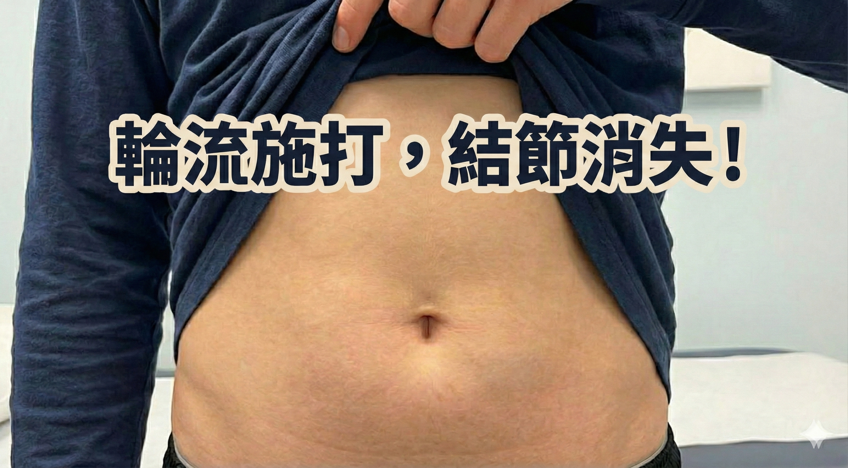 為了確保治療效果,並給予皮膚足夠的休息時間,我們強烈建議實行注射部位的每日輪替。注射區域應分散在皮下脂肪較厚的部位,像是左右大腿、手臂、肚皮等不同區域。請像畫地圖一樣,有系統地每天更換,讓皮膚有時間休息和修復,這也是讓治療更有效率的黃金原則。