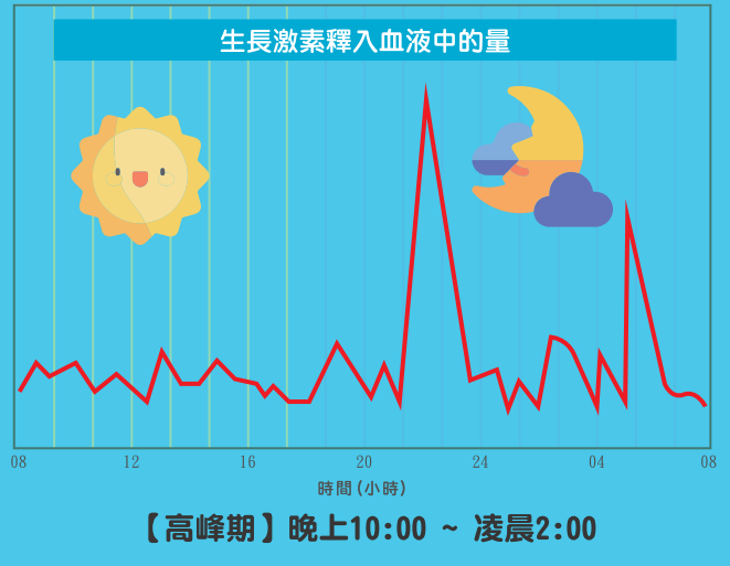 為什麼非要9點半?這不是為了管教孩子,而是為了配合身體的自然節律。人體分泌「生長激素」並不是全天候平均的,它有特定的「高峰期」。這個高峰期通常發生在熟睡後的夜晚,大約是晚上10點到凌晨2點之間,分泌量可以達到白天的數倍之多。重點來了,生長激素只有在進入「深層睡眠」時才會大量釋放。如果孩子10點才上床,翻來覆去到11點才睡著,等真正進入深層睡眠可能已經快12點了,等於錯過了生長激素分泌最旺盛的黃金時段前半場,這對長高來說是非常可惜的浪費!